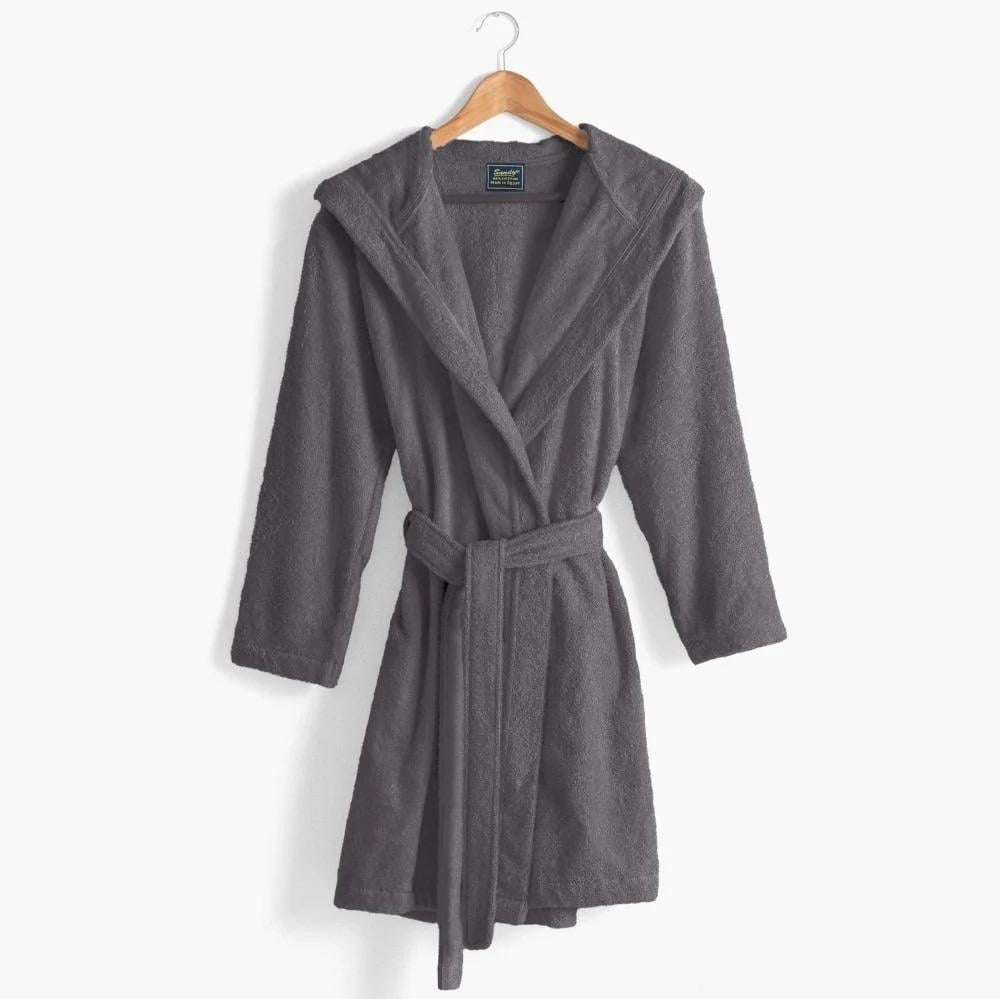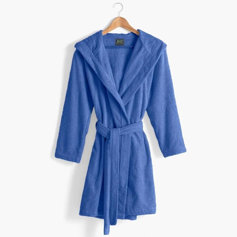 روب استحمام ساندي مريح للغاية بملمس القطن الناعم والسماكة الممتازة للتمتع بالصفاء والاسترخاء. مصمم بياقة منسدلة ورباط على الخصر قابل للتعديل لارتداء مريح، مع جوانب ناعمة، وأكمام عملية يسهل تحريكها.